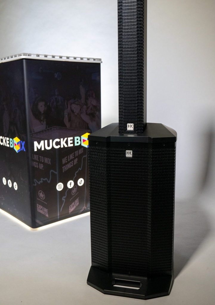 Wir bringen neben der Muckebox auch ein Lautsprecher-System mit, um eure Eventlocation professionell zu beschallen.